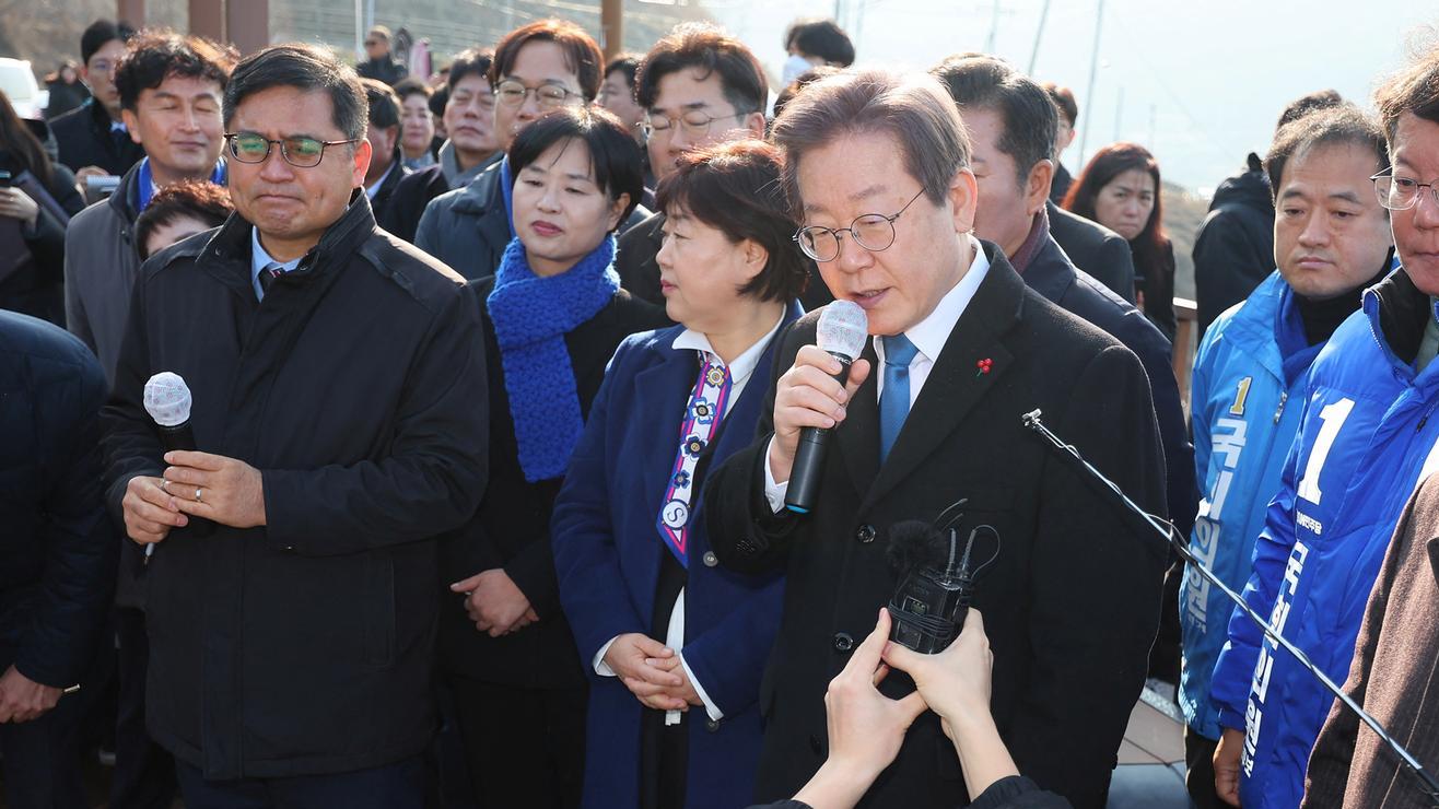 Lee Jae-myung fue atacado cuando conversaba con periodistas en la ciudad de Busán. Fue llevado consciente al hospital.