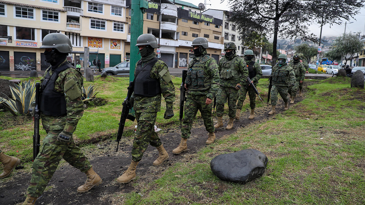 Por cuarto día consecutivo, las Fuerzas Armadas de Ecuador patrullan las calles con vehículos blindados y revisan casa por casa en busca de los líderes de las organizaciones criminales