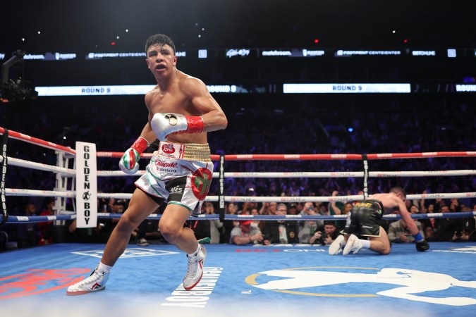 Jaime Munguía, de 26 años, retuvo el cinturón silver de peso supermediano de la Organización Mundial de Boxeo (OMB) tras noquear en el octavo asalto a John Ryder. El mexicano cuenta con un récord de 43 victorias y 34 de ellas llegaron por la vía rápida.