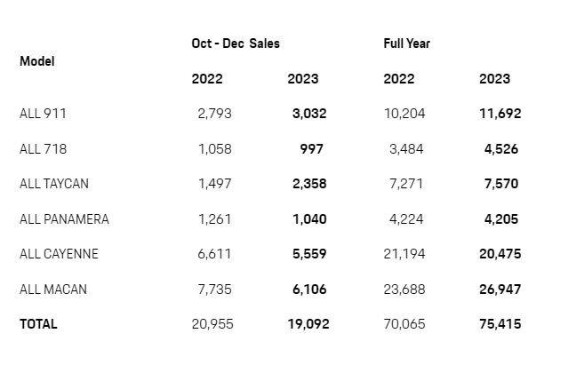 A través de un comunicado de prensa oficial, Porsche reveló que las entregas minoristas en los Estados Unidos alcanzaron un nuevo récord en 2023, totalizando 75,415 unidades, es decir, un aumento del 7.6% con respecto al récord anterior establecido en 2022.