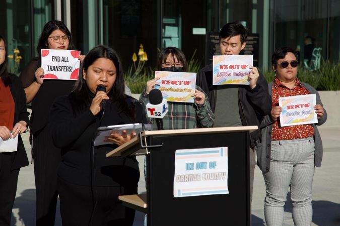 Defensores de los derechos de los inmigrantes protestaron por el aumento del 1,200% en las transferencias de inmigrantes y refugiados para su deportación, por parte de las autoridades del Departamento del Alguacil del condado de Orange hacia el Servicio de Control de Inmigración y Aduanas (ICE).