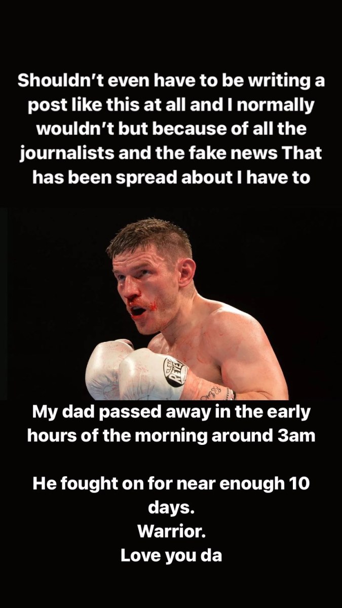 “Ni siquiera debería tener que escribir una publicación como esta y normalmente no lo haría, pero debido a todos los periodistas y las noticias falsas que se han difundido, tengo que hacerlo. Mi padre falleció en las primeras horas de la mañana, alrededor de las 3 de la madrugada. Siguió luchando durante casi 10 días. Guerrero. Te amo, papá”, escribió su hijo Jake en Instagram.