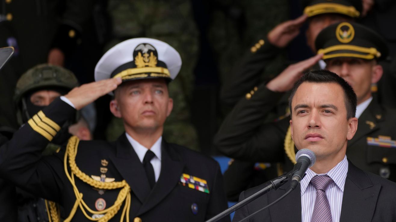 Daniel Noboa, presidente de Ecuador, en la Escuela de Policía Gral Alberto Enríquez de Quito Crédito: Deutsche Welle