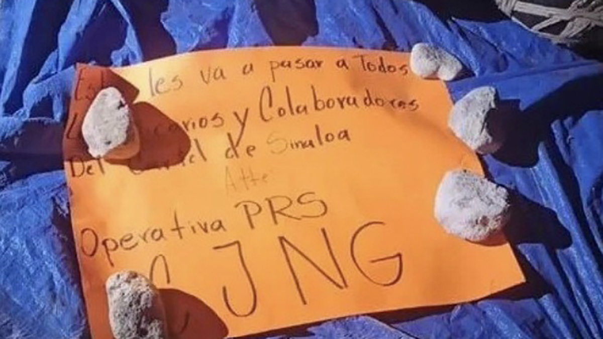 Información extraoficial recopilada por Infobae indica que junto a las víctimas había un narcomensaje firmado por la Operativa PRS, un brazo armado del Cártel Jalisco Nueva Generación (CJNG): “Esto les va a pasar a todos los sicarios y colaboradores del Cártel de Sinaloa”, decía el mensaje.