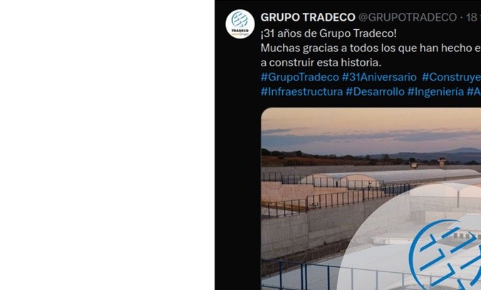 Por ejemplo, sabemos que Grupo Tradeco, es empresa matriz de la firma que construyó el CECOT, es decir, Contratista General de América Latina S.A de C.V.. Un dato relevante sobre su empresa central en México, es que estuvo varios meses sancionada por corrupción .