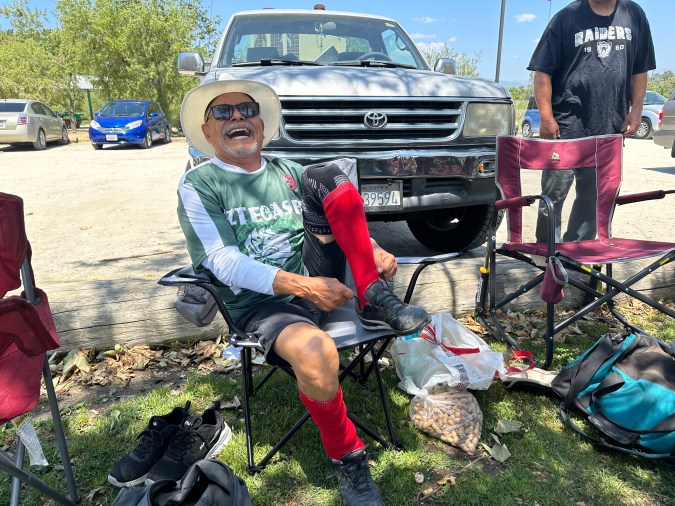 “Había un equipo de veteranos de 50 años, y los viejitos como yo, íbamos a verlos jugar, pero cuando vino covid, se suspendió esa liga; luego empecé a organizar otro grupo con jugadores de 65 años y más y nos venimos en el 2020 a jugar al Parque Estatal Del Río de Los Ángeles”.