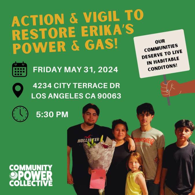 Erika, familia, defensores de los inquilinos y aliados llevaron a cabo una vigilia afuera de su casa en City Terrace para exigir que se hagan las reparaciones de inmediato, y hacer pública la situación que está pasado.