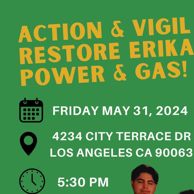 Erika, familia, defensores de los inquilinos y aliados llevaron a cabo una vigilia afuera de su casa en City Terrace para exigir que se hagan las reparaciones de inmediato, y hacer pública la situación que está pasado.