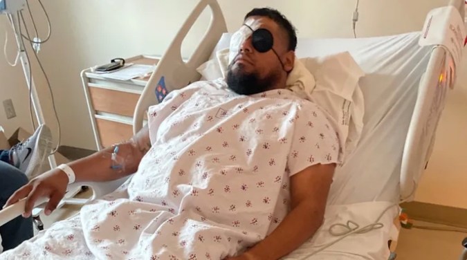 Aunque su carro no fue alcanzado, pedazos de vidrio volaron y le perforaron un ojo, por lo que tuvo que ser sometido a una cirugía inicial, y le esperan varias más operaciones más, en tanto los médicos anticipan una larga recuperación.