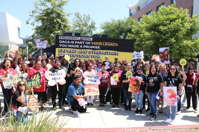 La manifestación en el LA Trade-Tech College fue parte de una semana nacional de acción de todos los grupos adscritos a la The Home Is Here Coalition, de la que es parte CHIRLA y otras 19 organizaciones en el país, las cuales piden con urgencia al presidente Biden que cumpla su promesa de proteger a los inmigrantes, que proteja su legado y tome medidas afirmativas para evitar que miles de beneficiarios de DACA y sus familias pierdan su estatus y, en el peor de los casos, corran peligro de deportación – en caso de que el juez Hanen falle en contra del programa.