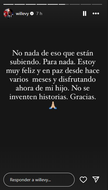 Ante esta ola de comentarios, el cubano respondió: “No nada de eso que están subiendo. Para nada. Estoy muy feliz y en paz desde hace varios meses y disfrutando ahora de mi hijo. No se inventen historias. Gracias”.