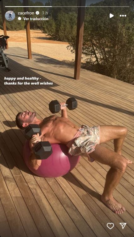 Este domingo, el actor compartió una foto en sus Historias en Instagram para informar a sus seguidores que se encontraba bien. “Feliz y saludable. Gracias por los buenos deseos”, escribió Efron.
