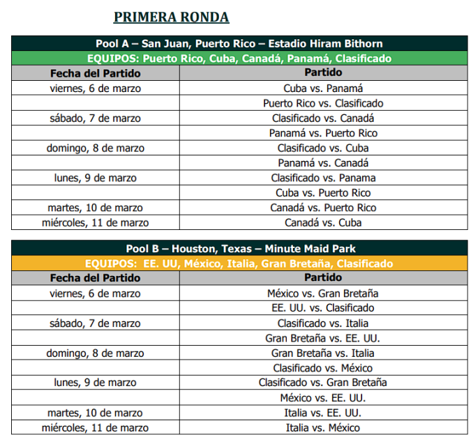 Así queda el calendario de los Juegos del Clásico Mundial de Beisbol