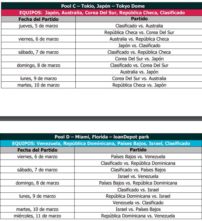 Así quedarán las rondas eliminatorias del Clásico Mundial