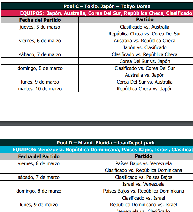 Así quedarán las rondas eliminatorias del Clásico Mundial