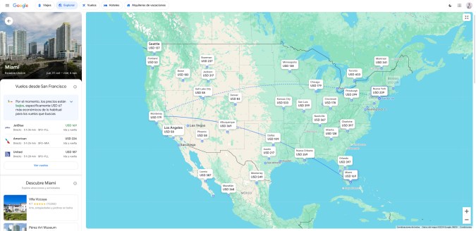 Si no tienes un destino específico en mente, Google Flights cuenta con una herramienta llamada Explorar, que te permite visualizar en un mapa los precios más bajos para distintos destinos alrededor del mundo. Esto es ideal para viajeros flexibles que están abiertos a descubrir nuevos lugares sin comprometer su presupuesto.
