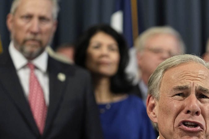 Greg Abbott asegura que Joe Biden y Kamala Harris son los causantes del incremento de inmigrantes en el territorio estadounidense. Crédito: J. Scott Applewhite | AP