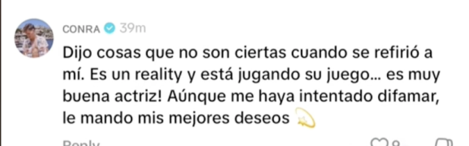 A pesar de que Bozzo no mencionó explícitamente el nombre de su exnovio, los usuarios en redes sociales rápidamente identificaron a Conrado Villagra, recordando que él la había acusado públicamente de engañarlo con otra mujer.