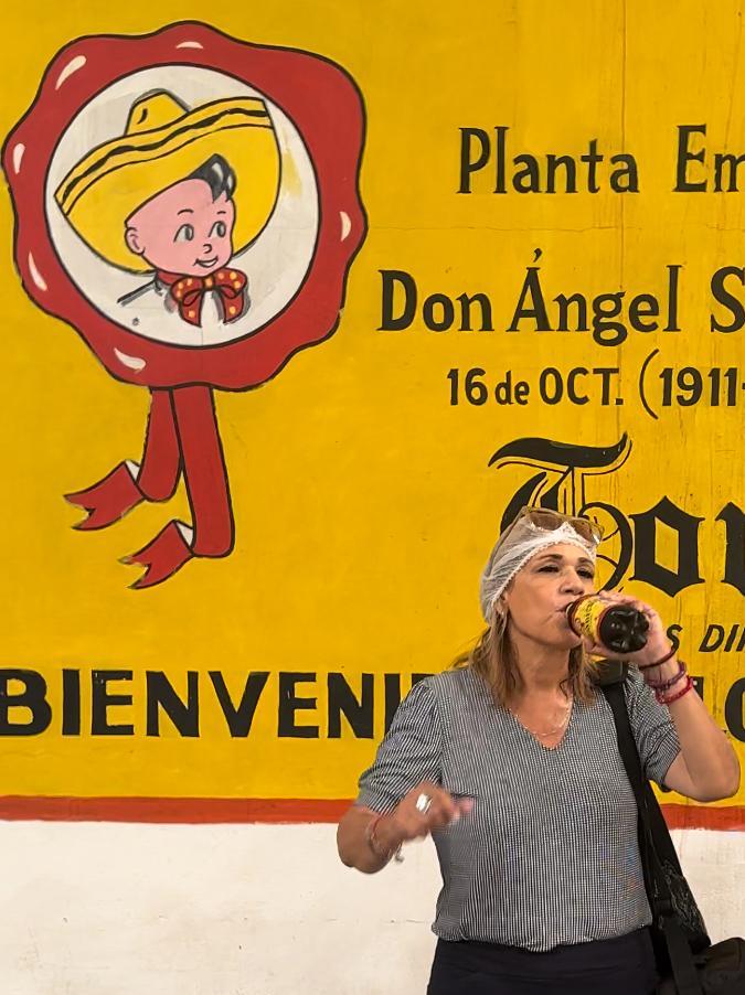 Patricia Guerrero disfruta de un tonicol en la planta embotelladora en El Rosario, Sinaloa. (Fotos Patricia Guerrero)