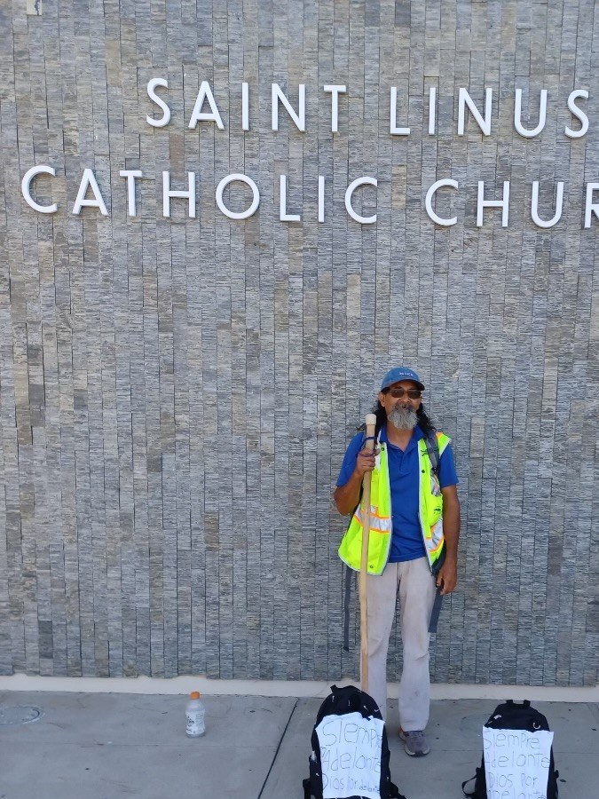 Antonio dice que empezó caminando desde la ciudad de Lake Forest en el condado de Orange hasta la Catedral de Nuestra Señora de Los Ángeles, alrededor de 45 millas.