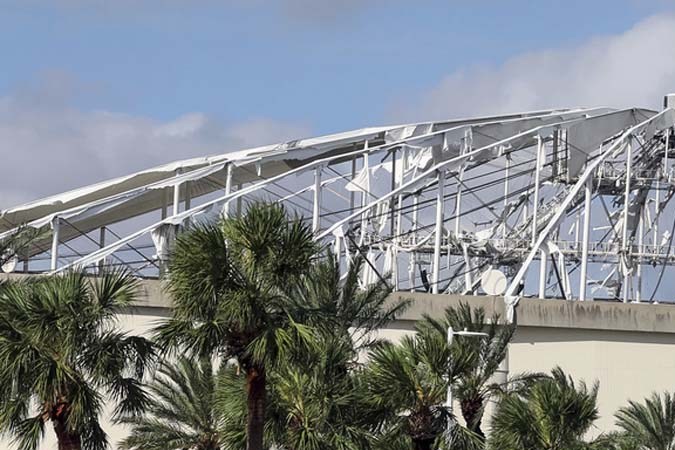El Huracán Milton desprendió parte del techo de un estadio de béisbol