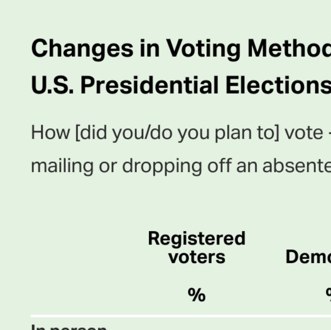 Ahora, el porcentaje de votantes demócratas por correo ha bajado 20 puntos, al 27%. El voto por correo también ha bajado 13 puntos entre los independientes y 11 puntos entre los republicanos.