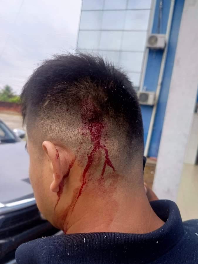 Ahí es cuando los ocupantes, se dan cuenta que el chofer que conduce el vehículo sangra de la cabeza, mientras que toca insistentemente la bocina para pasar un sector con alto tráfico en la carretera.