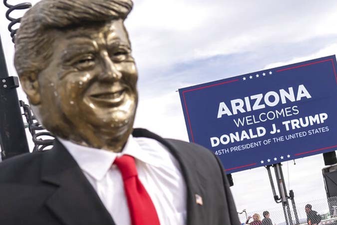 Donald Trump es ridiculizado mediante misteriosas estatuas que aparecen en sitios públicos
