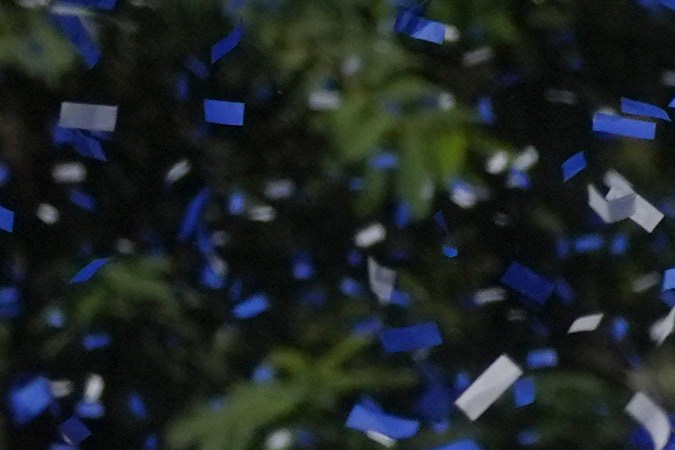 Al mismo tiempo, en el Gloria Molina Grand Central Park se desató una lluvia de confeti blanquiazul