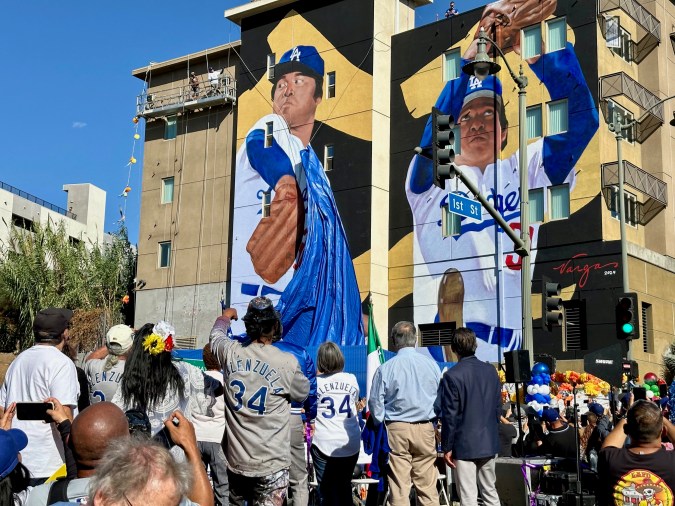 Entre música de mariachi y rodeados por una multitud de fanáticos emocionados hasta las lágrimas, el concejal Kevin de León, la alcaldesa Karen Bass y el muralista Robert Vargas develaron el histórico mural dedicado al legendario lanzador mexicano de Los Dodgers, Fernando Valenzuela “El Toro de Etchohuaquila”.