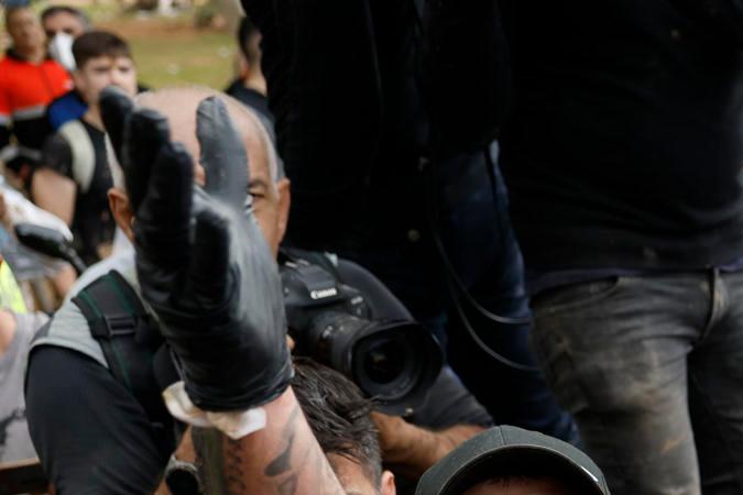 Cientos de voluntarios y vecinos interrumpieron las tareas de limpieza de las calles y sótanos al ver llegar a la comitiva con repetidos gritos de “fuera, fuera” y el lanzamiento de barro y lodo, que alcanzó a los reyes y al resto de autoridades, en un pueblo que sufrió la pérdida de al menos 62 personas por las inundaciones.