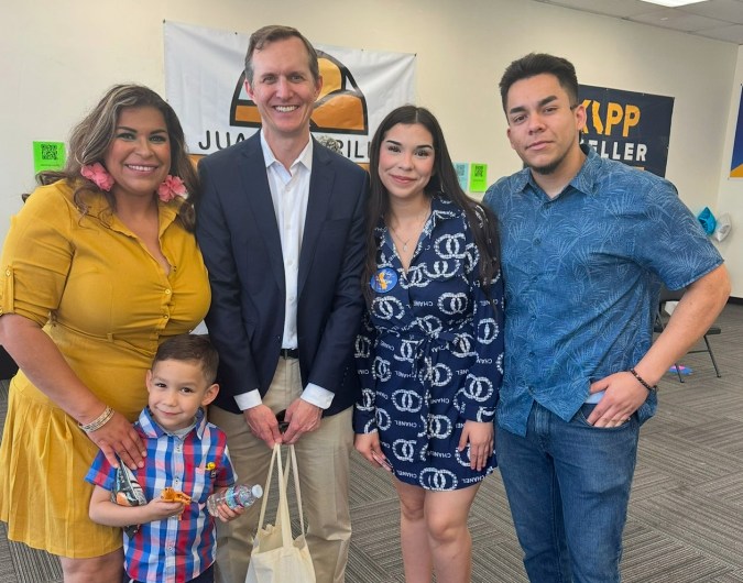 Nadia Abrica con sus hijos junto al congresista electo George Whitesides. (Cortesía Fotos Nadia Abrica)
