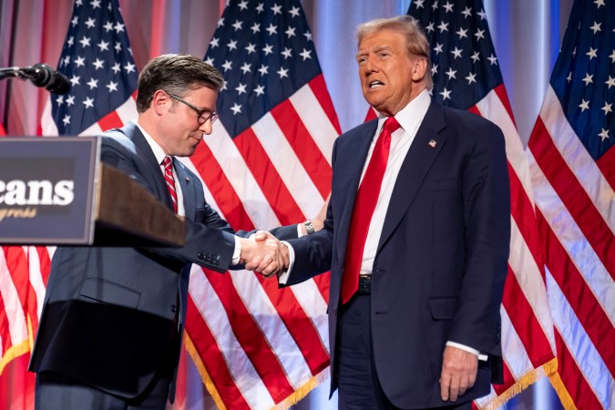 La primera parada de Trump ocurrió en la Cámara de Representantes, donde se reunió con los republicanos y donde Johnson se refirió a él como “rey”, derivando incluso en una broma de Trump: “Sospecho que no volveré a postularme, a menos que digan: ‘Es tan bueno que tendremos que pensar en otra cosa'”.