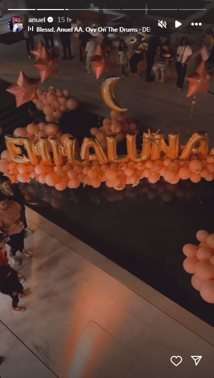 A través de sus historias de Instagram, Anuel compartió un video en el que muestra parte de la celebración que se cree era el babyshower de su bebé y en la decoración del lugar se ve un gran arreglo de globos en el que se lee: “Emmaluna”.