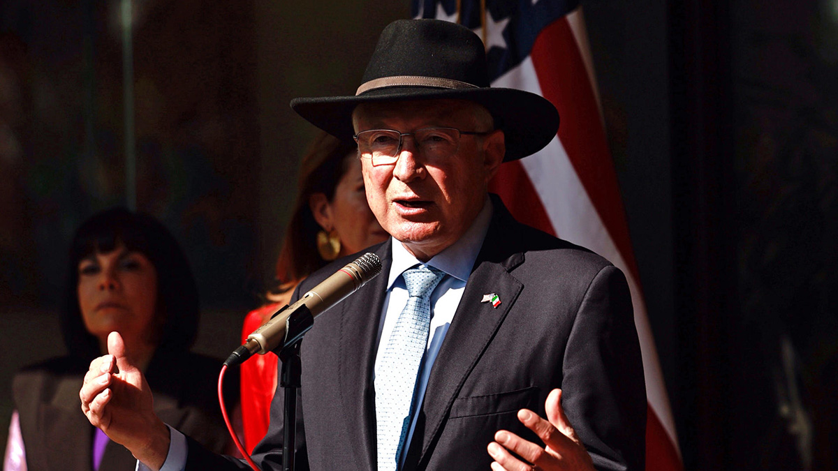 Luego de reunirse con empresarios mexicanos, el diplomático ofreció una conferencia de prensa en la que dijo que es fundamental tener un “entendimiento claro entre Estados Unidos y México, porque desde los tiempos antes de llegar el presidente López Obrador (2018-2024) se descompuso la relación en términos de seguridad”.