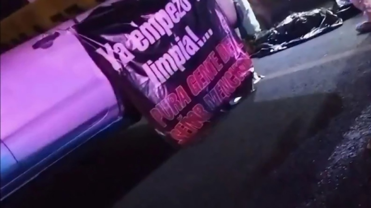 Junto al macabro hallazgo había una narcomanta escrita por miembros del Cártel Jalisco Nueva Generación: “Ya empieza la limpia, pura gente del Mencho. Aquí puro CJNG”.