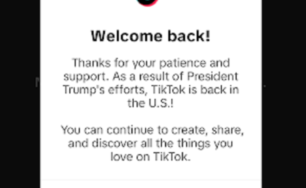 “TikTok se encuentra en proceso de restablecer el servicio. Agradecemos al presidente Trump por brindar la claridad y la seguridad necesarias a nuestros proveedores de servicios de que no enfrentarán sanciones al brindar TikTok a más de 170 millones de estadounidenses”, dijo la plataforma en un comunicado.