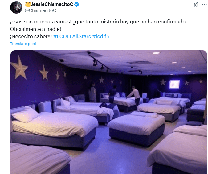 Se observa una habitación con muchas camas y las paredes moradas, si ocurre de esta manera, sería un cambio significativo. En la última temporada, los 20 participantes se dividieron en tres cuartos: Agua, Tierra y Fuego.