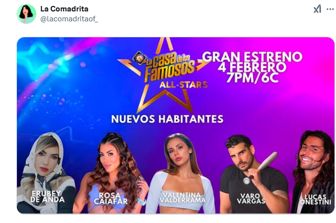 Los nuevos famosos, según los rumores, serían: Rosa Caiafa, Varo Vargas, Erubey De Anda, Rosa Caiafar, Valentina Valderrama y Lucas Onestini.