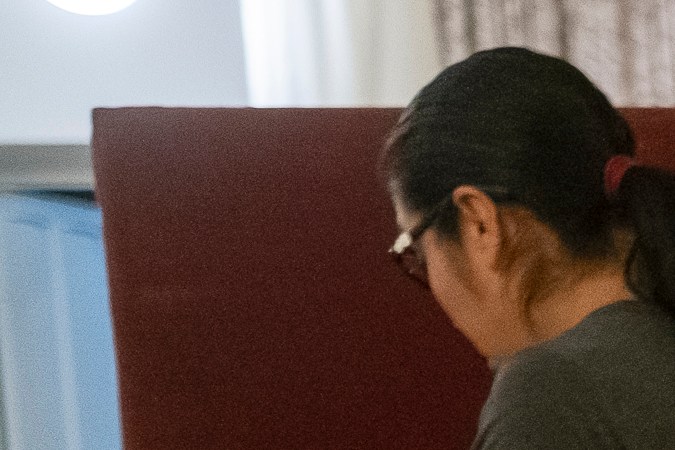 Berenice Morales llena una solicitud en la Iglesia Episcopalia de San Pablo en Pomona. Crédito: Isaac Ceja | Impremedia