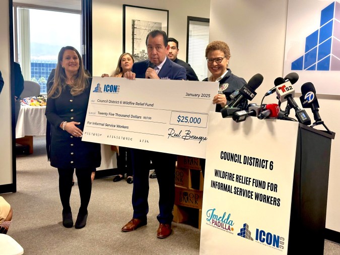 La concejal Padilla dice que su distrito es el primero del Concejo de Los Ángeles que entrega apoyos a los trabajadores afectados por los incendios, pero espera que el director de ICON, Roberto Barragán pueda trabajar con otros distritos, ya que su organización está dispuesta a igualar la suma que pongan los concejales.