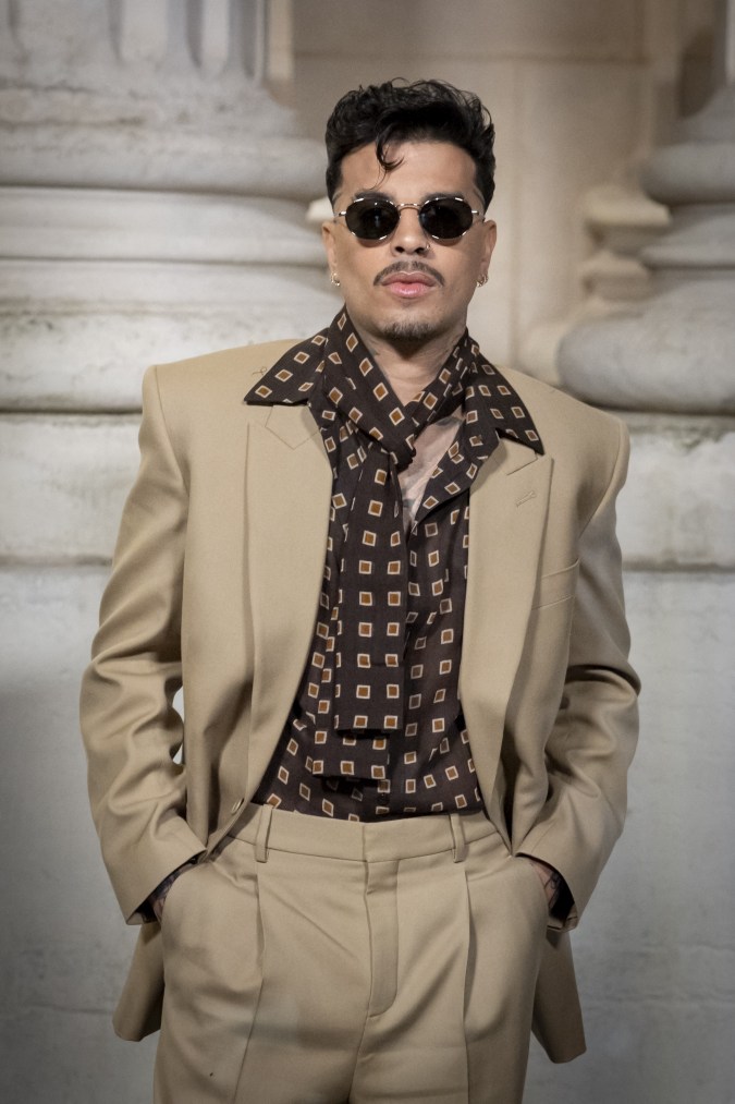 En esta edición, Rauw destacó con su presencia en el desfile masculino de otoño 2025 de Saint Laurent, luciendo un impecable traje marrón medio que combinaba perfectamente con su estilo sofisticado.