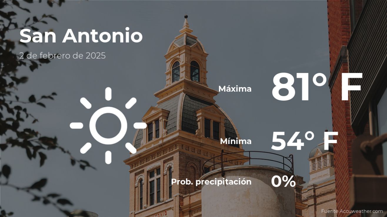 Conoce cómo estará el tiempo en San Antonio, Texas, para hoy domingo 2 de febrero. Antes de salir de tu casa, descubre el pronóstico meteorológico y las condiciones climáticas más relevantes para este día.