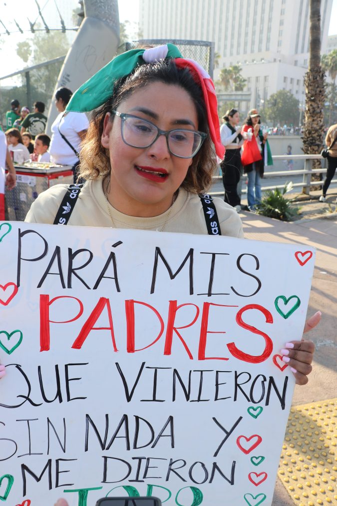 Aun con su embarazo, Alejandra, de origen mexicano, dijo que su bebé, quien nacerá en algunos meses, se enterará de que su madre salió en defensa de sus abuelos que llegaron a Estados Unidos para darle una vida mejor a sus hijos y que, por miedo a ser deportados, no salieron a las calles a luchar.