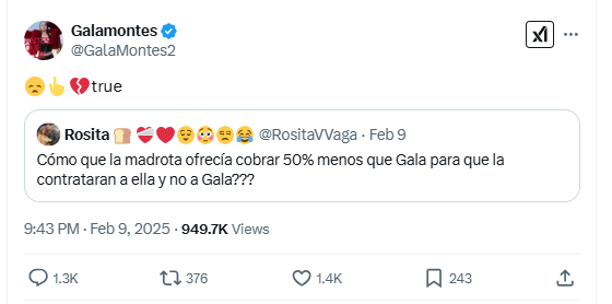 Este movimiento no pasó desapercibido por los seguidores, quienes rápidamente comenzaron a especular sobre las razones detrás de esta ruptura. La situación se intensificó cuando Montes compartió en X (antes Twitter) una publicación que acusaba a Pindter de ofrecer sus servicios profesionales a la mitad del costo que cobra Gala, lo que habría afectado negativamente los contratos de la actriz.