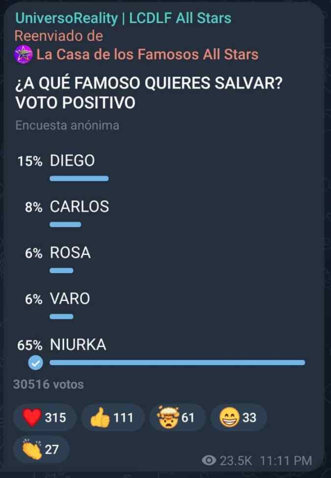 Las predicciones dicen que salvará a Niurka, ya que forma parte de su equipo y tienen una relación de amistad que ha crecido a lo largo de las semanas.