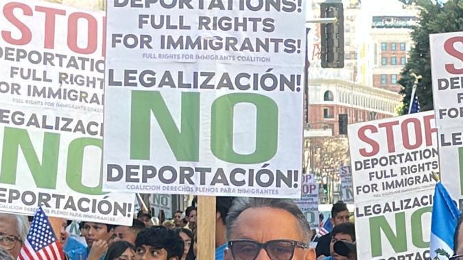 Cientos de manifestantes marchan contra a las deportaciones de Trump y piden detener la expulsión de personas que trabajan duro y pagan impuestos