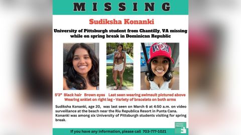 Sudiksha Konanki, estudiante de la Universidad de Pittsburgh, desapareció hace menos de una semana mientras disfrutaba de sus vacaciones en Punta Cana