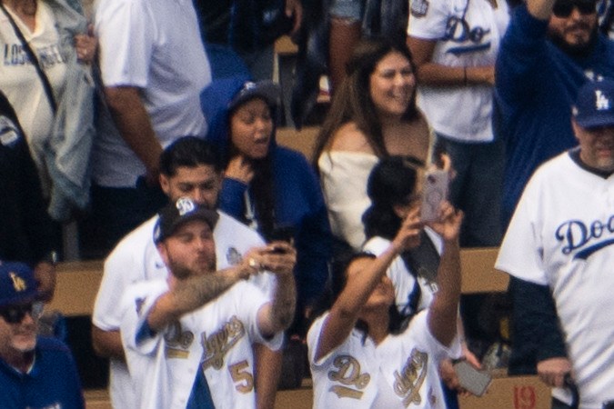 A continuación, algunos integrantes de la directiva del club -incluyendo Magic Johnson y Billie Jean King- izaron la bandera del título de 2024 detrás del jardín central y luego fue develado el pendón de campeones en forma de béisbol colgado al lado de los otros siete detrás del poste de foul del jardín derecho.
