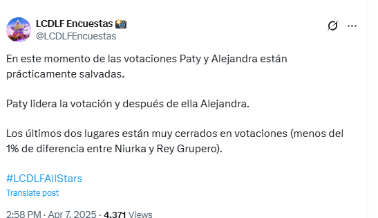 Según otra encuesta de la cuenta @LCDLFEncuestas, la eliminación está entre Rey Grupero y Niurka Marcos. Ambos tienen menos de 1 % de diferencia.
